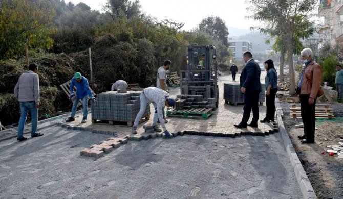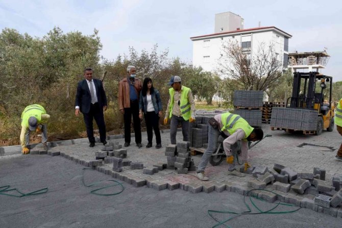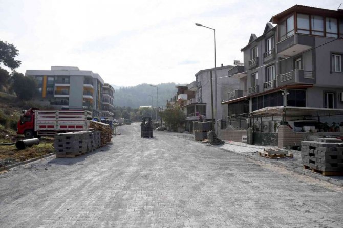 Aydın Büyükşehir Belediyesi ile Kuşadası Belediyesi tarafından Davutlar Mahallesi'nde başlatılan yol yapım seferberliği hız kesmeden sürüyor.