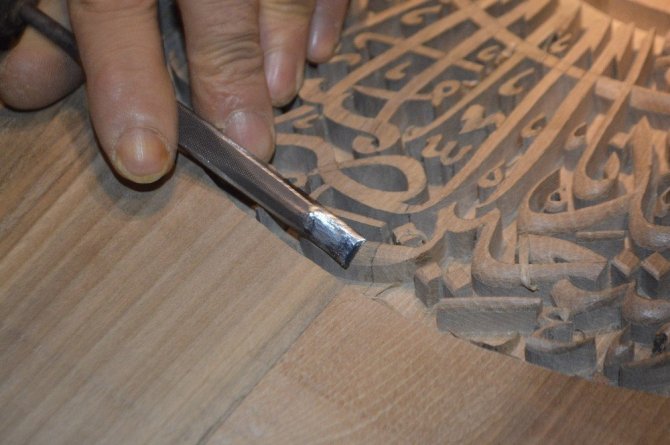 Yapılan ahşap hat sanatını genelde sert ağaç olan dişbudak, ceviz ve kestane ağacından yapıldığını belirtti.
