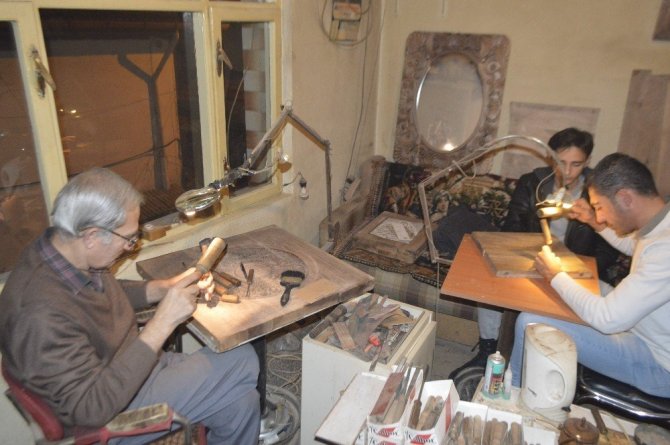 Baba Mehmet Esen, unutulmaya yüz tutan sanatlar arasında yer alan ahşap oyma sanatını oğulları ile yaşatmaya çalışıyor.
