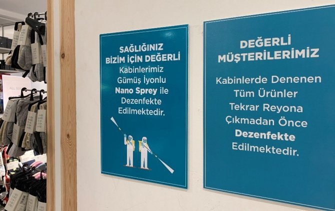 Denenen ürün, kıyafet ya da ayakkabı hijyen kabinlerinde dezenfekte ediliyor.