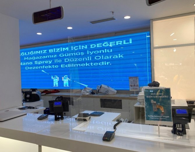 Nano Gümüş İyon Teknolojisi ile periyodik aralıklarla kasa bölgesi gibi ortak kullanım alanları dezenfekte ediliyor.