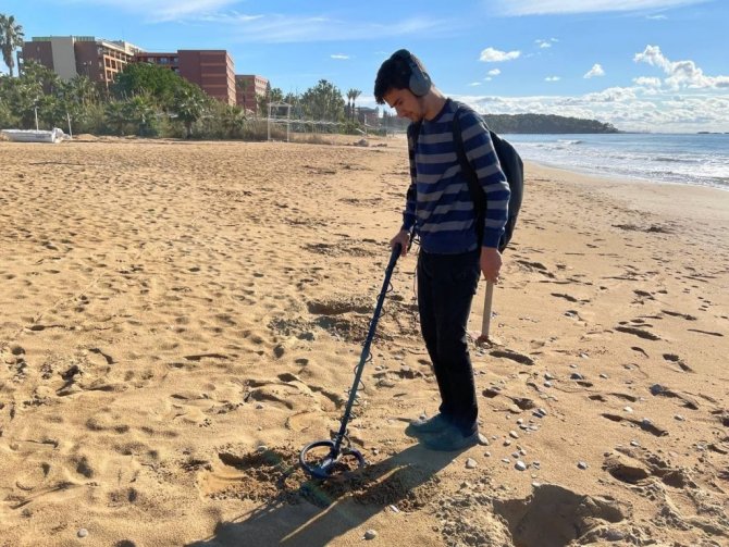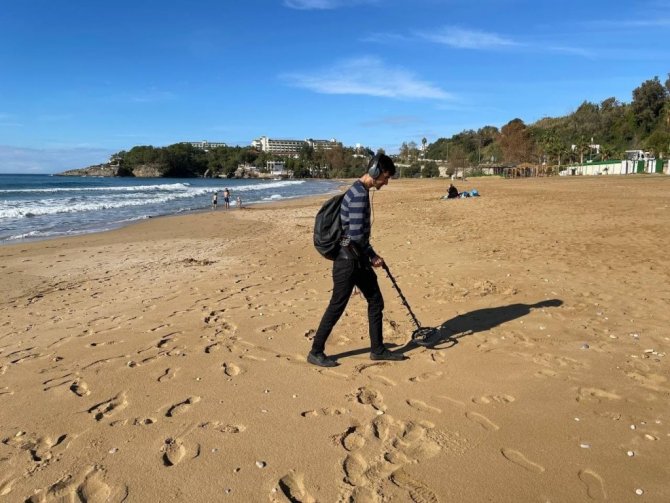 Antalya'nın Alanya ilçesinde yağış ve rüzgarlı hava sonrası define avcıları soluğu sahillerde aldı.