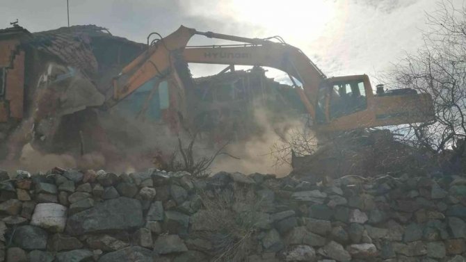 Kırıkkale'nin Delice ilçesinde, çevre kirliliğine yol açan ve kent estetiğine uygun olmayan metruk binalar yıkıldı.