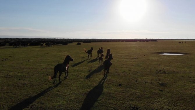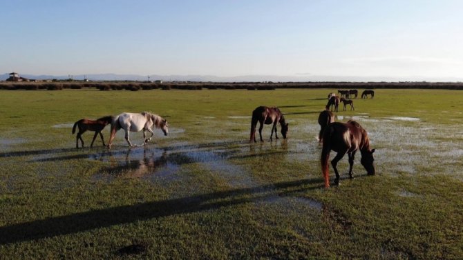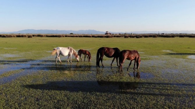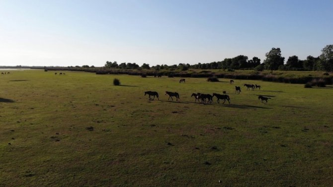 Birçok çeşit balık ve hayvan türünün bulunduğu deltaya yılkı atları ayrı bir güzellik katıyor. Fotoğraf tutkunlarının vazgeçilmezi olan yılkı atları görsel şölen sunuyor. Atlar, gün batımı ile birlikte havadan görüntülendi. Atlar ve gün batımı seyir zevki yüksek manzaralar ortaya çıkardı.