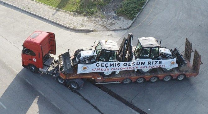 Samsun Büyükşehir Belediyesi(SBB), Rize'de meydana gelen sel felaketinin ardından arama kurtarma çalışmalarında kullanılmak üzere iş makinesi desteği sağladı.
