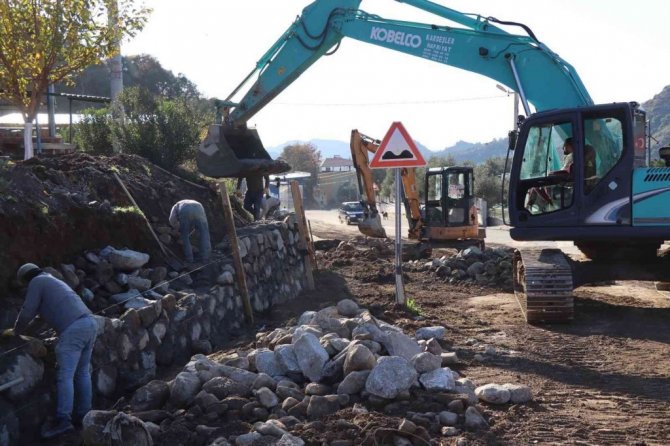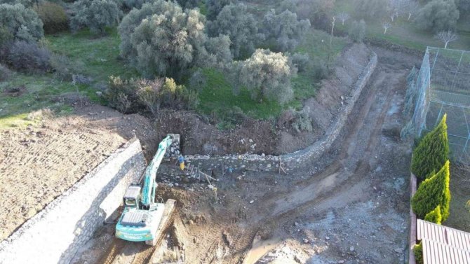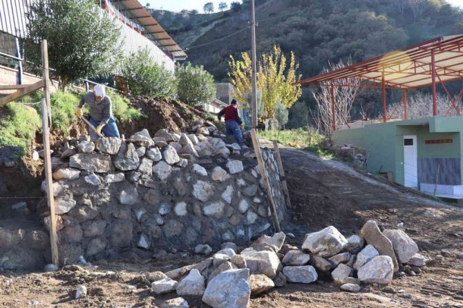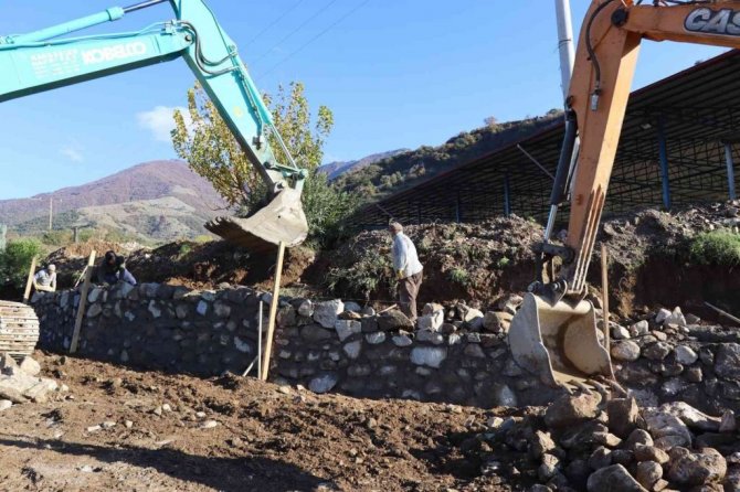 Nazilli Belediyesi Fen İşleri Müdürlüğü ekipleri, Demirciler Mahallesi'nde düğün salonu ve mezarlık çevresinde toplam 690 metreküp istinat duvarı yapım çalışmalarına başladı.