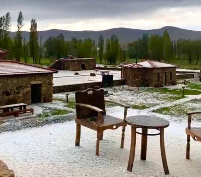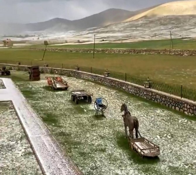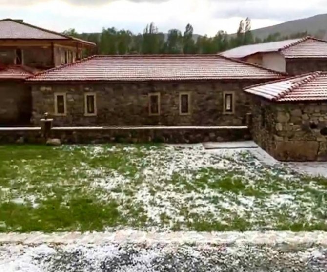 Bayburt'un Demirözü ilçesinde fındık büyüklüğünde dolu yağdı.