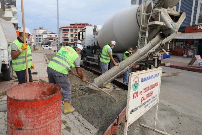 İlkadım Belediyesi Fen İşleri Müdürlüğü ekipleri, kentin ihtiyaç duyulan noktalarında gerçekleştirdiği beton yol ve kaldırım yapım çalışmalarıyla ilçenin çehresini değiştiriyor. Ekipler, şu ana kadar 600 metrekare beton kullanırken, çeşitli noktalarda çalışmaları devam ettiriyor. İlkadım Belediyesi Fen İşleri Müdürlüğü tarafından, kent merkezindeki baskı beton kaldırım çalışması gerçekleştiriliyor. Farklı noktalarda kaldırım, yol ve asfalt çalışmalarına devam eden Müdürlük ekipleri, çalışmaları hızlandırabilmek için baskı beton kaldırım uygulamasını devreye aldı. Kaldırım zeminine dökülen beton kalıplar vasıtasıyla kaldırımlar şekillendirilirken, yapılan uygulama ile kaldırımlar yeni görüntüsüne kavuşuyor.