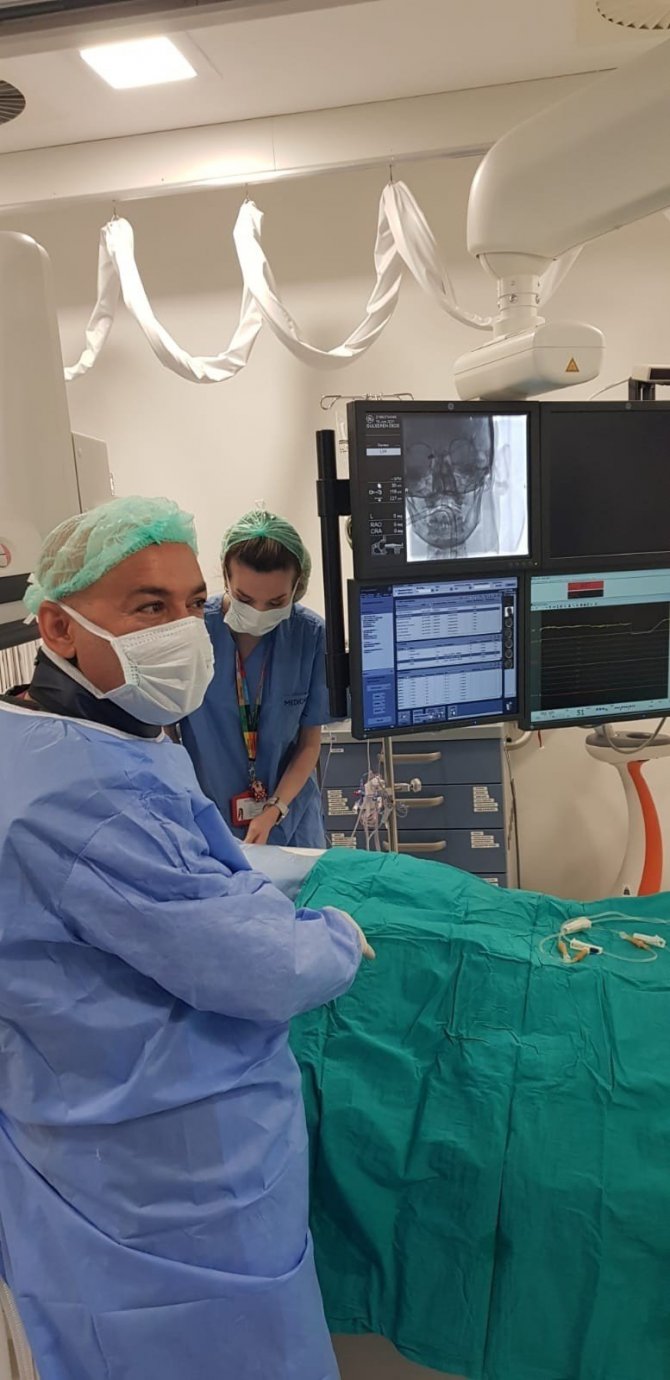 Son zamanlarda dengesizlik, baş ağrısı, ellerde uyuşma ve uyuklama gibi şikayetleri olan 75 yaşındaki hastaya yapılan kontrollerin ardından, beyni besleyen arkadaki 2 ve öndeki 1 şah damarının tamamen kapalı olduğu, öndeki tek damarda da baloncuk meydana geldiği ortaya çıktı. Kasıktan girerek gerçekleştirilen operasyon ile kafatası açılmadan, baloncuğu kapatılan ve damardaki daralma genişletilen 75 yaşındaki hasta, yaşama yeniden bağlandı.
