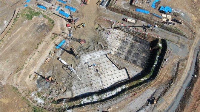 Trabzon'da Şenol Güneş Spor Kompleksi'nin yanındaki dolgu alanına yapılacak olan 900 yataklı Şehir Hastanesinin yapım çalışmaları sürüyor.