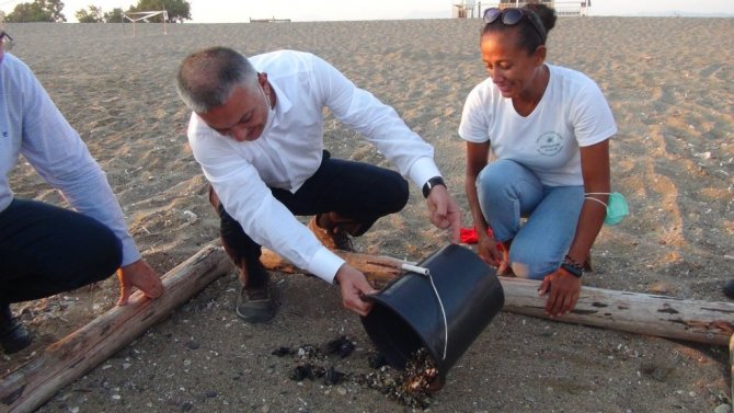 Antalya Valisi Ersin Yazıcı, yumurtalarından yeni çıkan caretta carettaları denizle buluşturdu.
