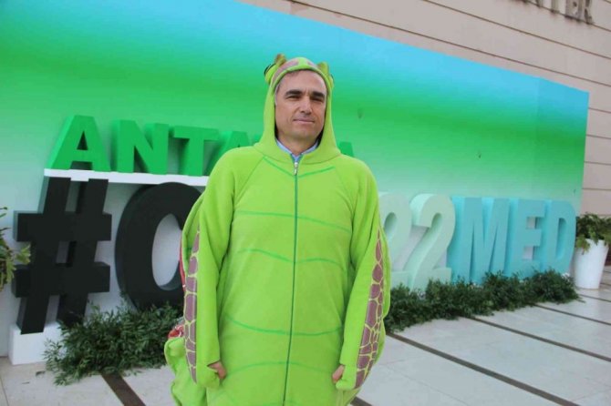 Deniz kaplumbağası kostümü ile COP 22’de farkındalık oluşturmaya çalıştı