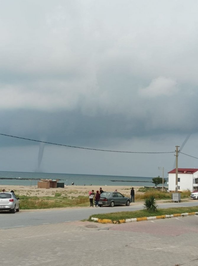 Sakarya'nın Karasu ilçesinde akşam saatlerinde denizde çıkan hortum paniğe neden oldu.