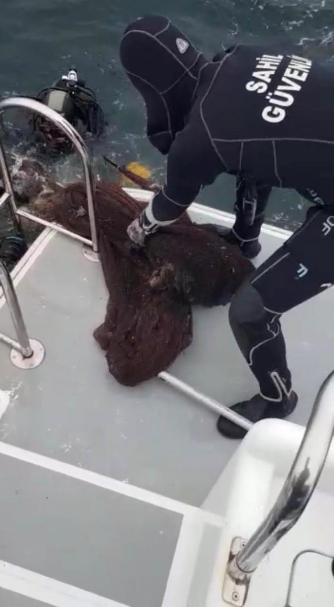 Denizden 250 kilogram ağırlığında hayalet ağ çıkarıldı