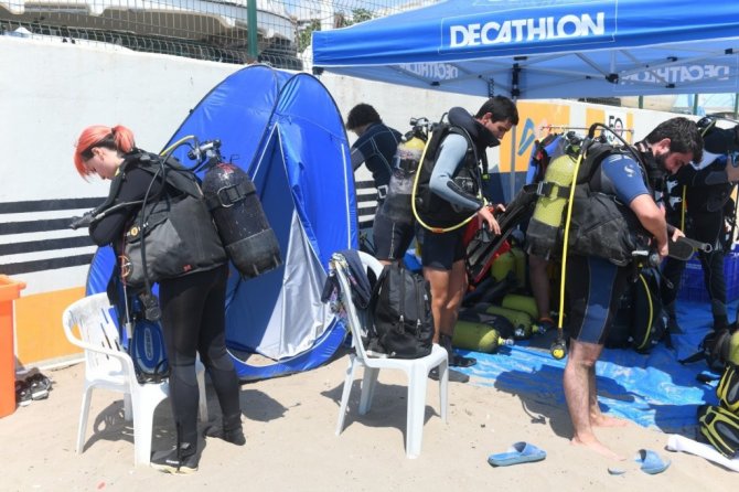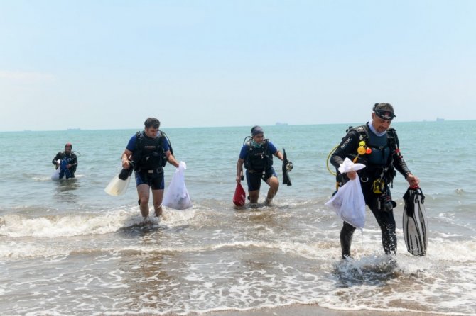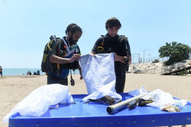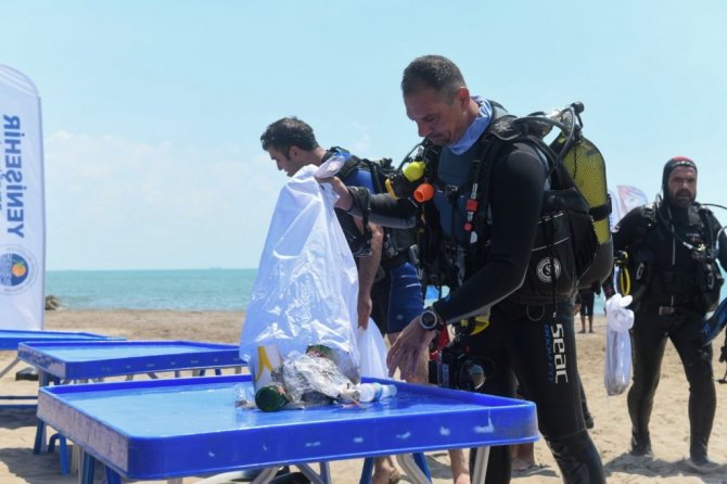 Mersin'in merkez ilçe Yenişehir Belediyesinin, Mersin Dalış Merkezi Spor Kulübü dalgıçlarıyla gerçekleştirdiği deniz dibi temizliğinde, 4 saatte denizden kilolarca atık çıkarıldı. Plastikten cama, metalden pet şişelere kadar çok sayıda atık, denizden temizlendi.