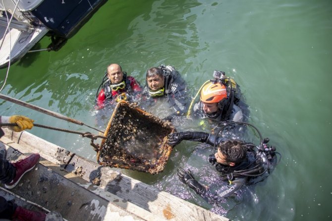 Büyükşehir Belediyesinde görev alan balık adamlar, deniz dibinden birbirinden ilginç materyalleri gün yüzüne çıkardı. Çok sayıda plastik ürün, halat, tahta parçaları, hatta alışveriş sepetleri bile deniz dibinden çıkarılarak vatandaşların görmesi için sergilendi.