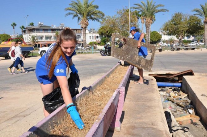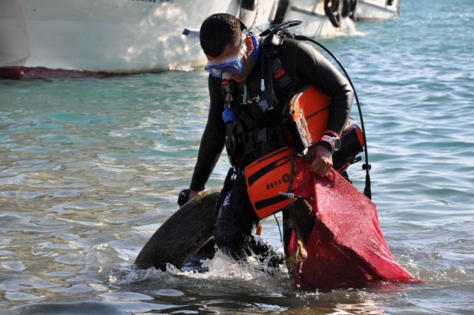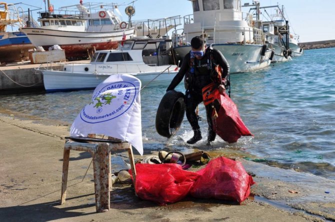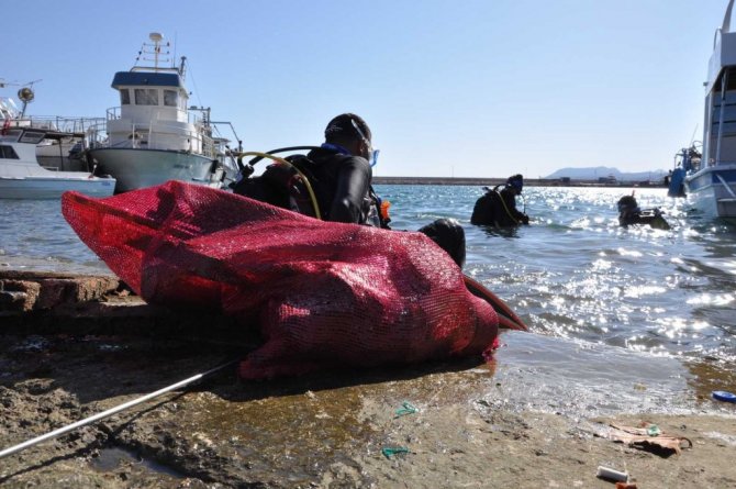 Mersin Dalış Kulübü Merkezi'nin dalgıçları deniz altında temizlik yaparken, çevre temizliğini ise "Ruhun Yelkenleri" projesi ekibi gerçekleştirdi.