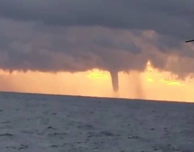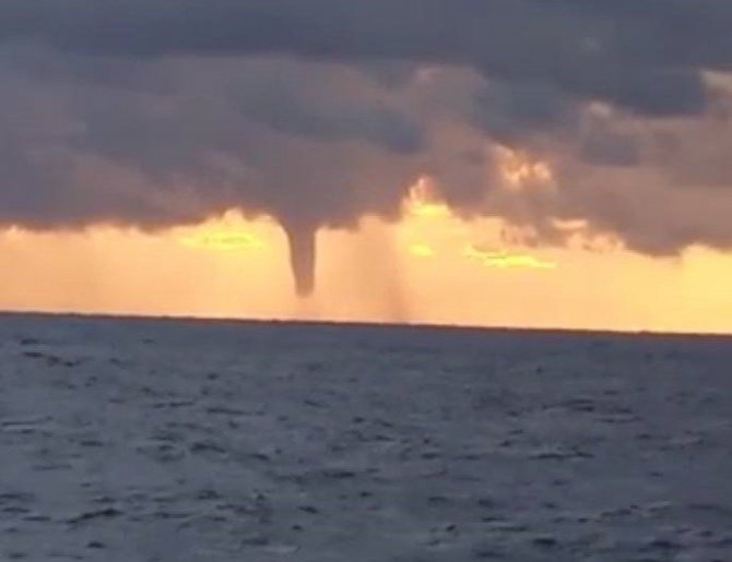 Mersin'de Doğu Akdeniz'in açıklarını bulutlar kaplarken devasa bir de hortum çıktı. O anlar bir balıkçı kaptanı tarafından görüntülendi.