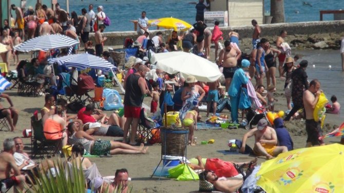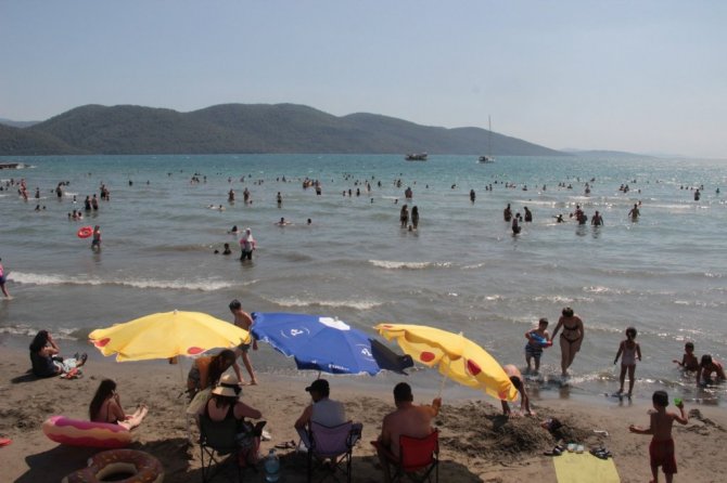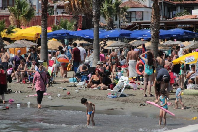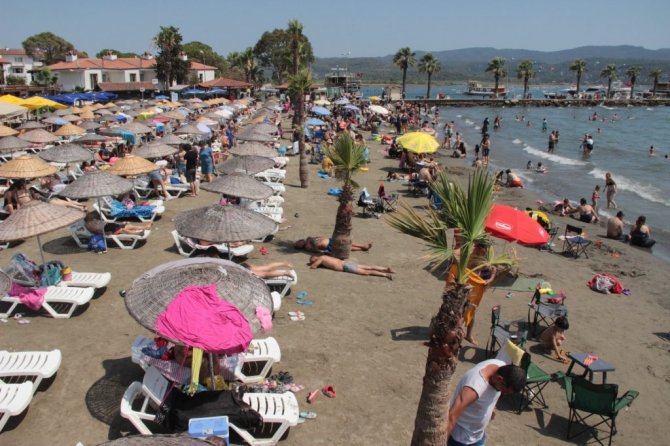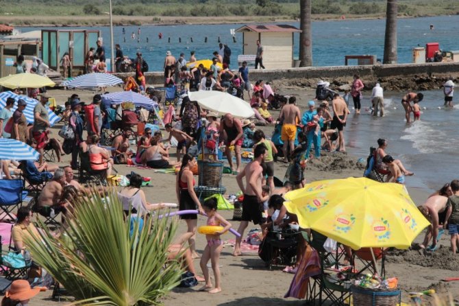 Hafta sonları aşırı kalabalığa sahne olan Akyaka sahili, kısıtlamaların kısmen kaldırılmasının ardından hafta içi de yoğunluk yaşıyor. 300 metrelik sahilde şezlong ve şemsiyeler belirlenen aralıklarda konulmasına rağmen, şezlong ve şemsiye kullanmayan vatandaşlar ile birlikte sahilde adeta izdiham yaşanıyor.