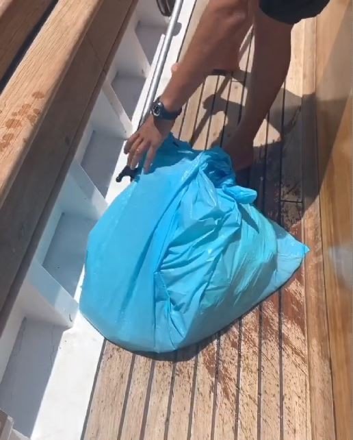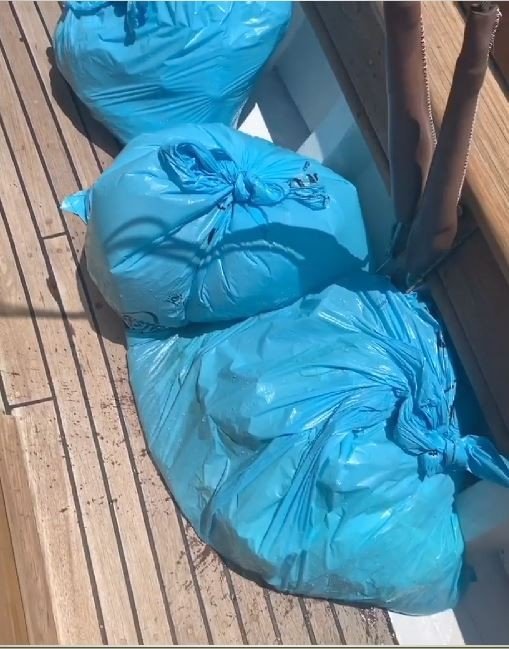 Denizin ortasında çöp torbalarıyla karşılaştılar