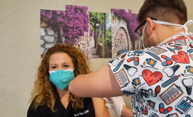 Denizki Tekden Hastanesi’nde hekimler ve sağlık çalışanları aşılarını oldu