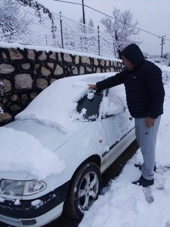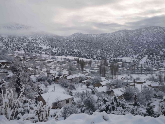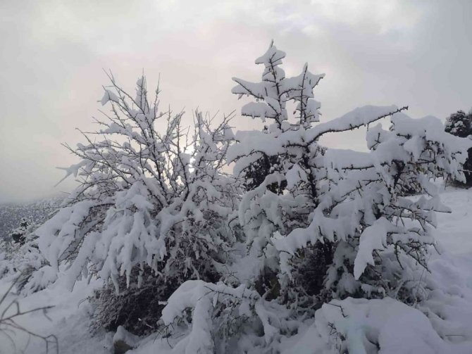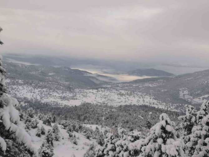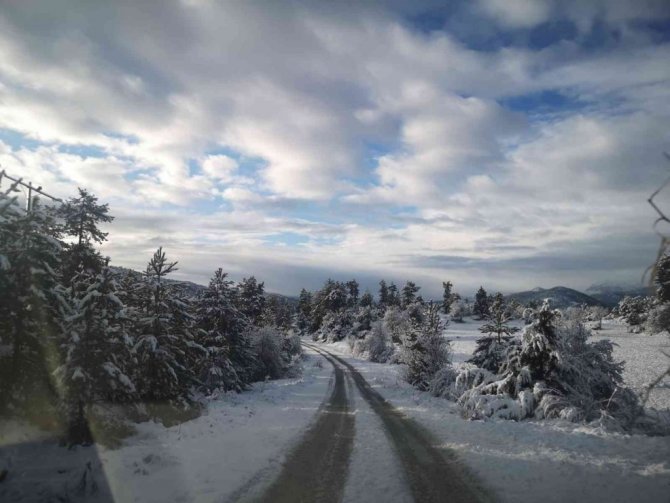 Denizli'nin Çameli ilçesinde gece saatlerinde lapa lapa yağan kar, günün doğmasıyla kartpostallık görüntü oluşturdu.