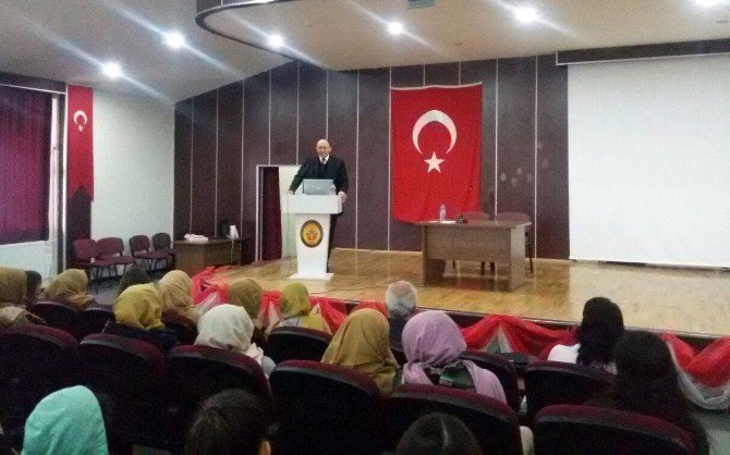 Türk ve İslam Dünyasının manevi atmosferini derinden etkilemiş alim ve tasavvuf büyüğü Hoca Ahmet Yesevi’nin hayatı, Türk ve İslam Dünyasına olan etkilerini konu alan konferansa, Okul Müdürü Osman Çakıroğlu, öğretmenler, öğrenciler ve veliler katılım gösterdi.