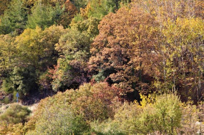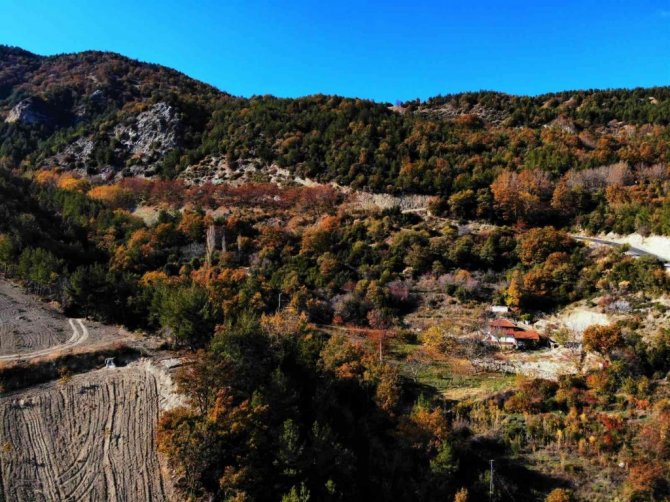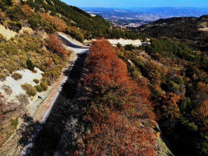 Denizli'nin Buldan ilçesinde bulunan ormanlık alanlar sonbaharda yeşil, sarı ve kahverenginin farklı tonlarının birleşmesiyle kendine hayran bıraktı.