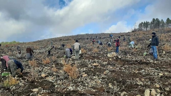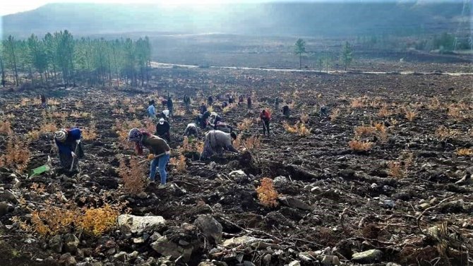 Denizli'nin Çardak ilçesinde 2020 yılı Eylül ayında çıkan yangının yaraları sarılmaya başlandı. 228,50 hektar alanda 600 bin fidan toprakla buluşmaya hazırlanıyor.