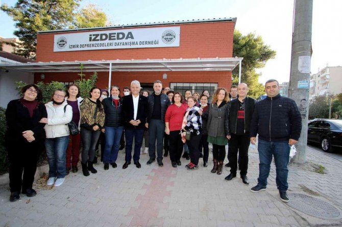 İzmir Depremzedeleri Dayanışma Derneğinde (İZDEDA) depremzedelerle bir araya gelen Bayraklı Belediye Başkanı Serdar Sandal, "Bayraklı afet bölgesi ilan...
