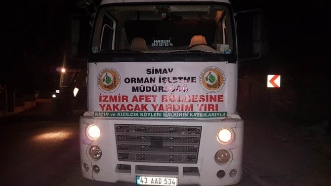 Kütahya’nın Simav ilçesinde, Orman İşletme Müdürlüğü organizesiyle Kiçir, Kızılcık ve Sarıkaya köylerinden, İzmir’deki depremzedelere bir tır dolusu kesilmiş odun gönderildiği bildirildi.
