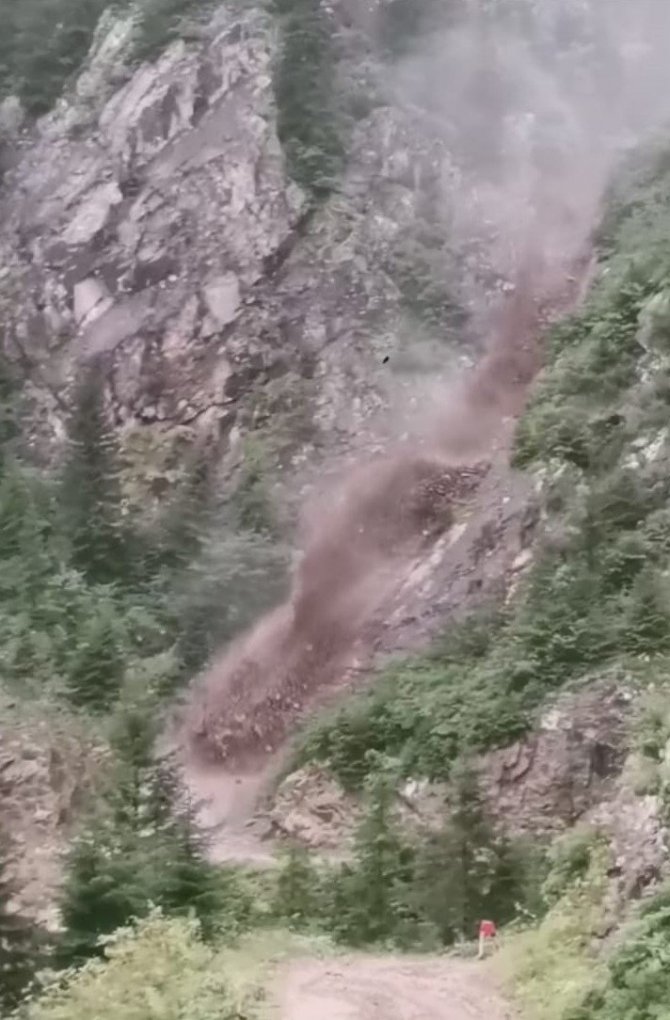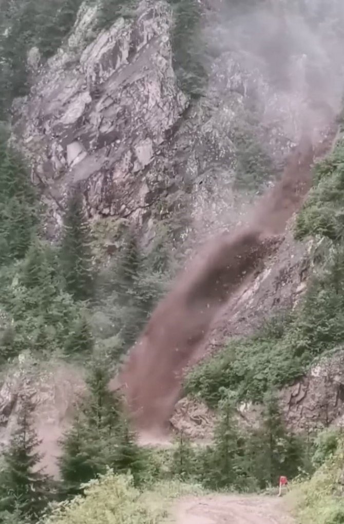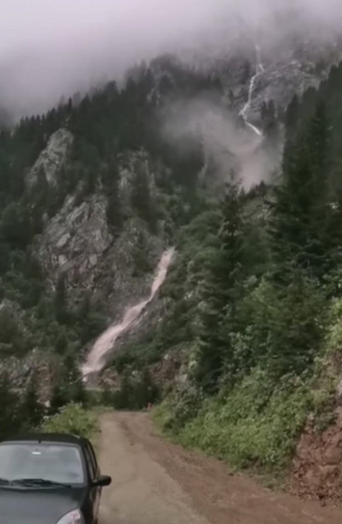 Trabzon'un Çaykara ilçesinde dünyaca ünlü Derebaşı virajlarını gezmeye giden bir grup yöre halkı ve turist yamaçtan akan sel ve çamur nedeniyle yolun ulaşıma kapanması nedeniyle yolda mahsur kaldı.