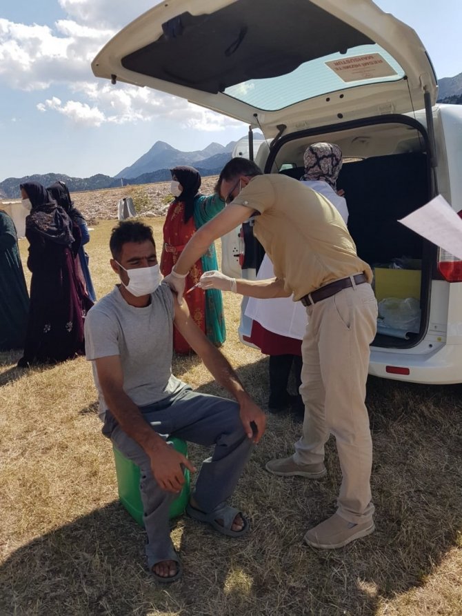 Bölgede yürütülen aşılama faaliyetlerine ilişkin yapılan açıklamada, ilçede bulunan mevsimlik tarım işçilerinin aşılarının mobil ekiplerince tamamlandığı kaydedildi.