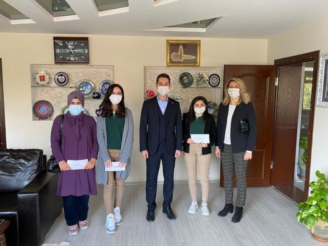 Ödül alan öğrenciler, Kaymakam Mehmet Can İrdelp’e yakın ilgisinden dolayı teşekkür ettiler.