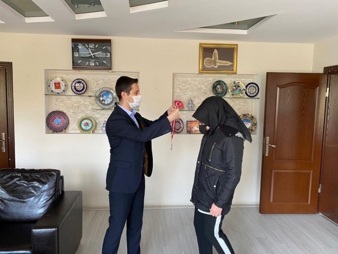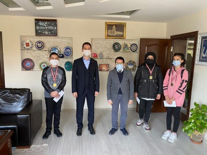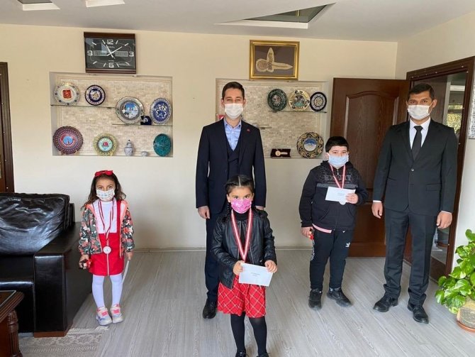 Altıntaş Kaymakamı Mehmet Can İrdelp öğrencileri makamında kabul ederek ödüllerini tek tek takdim etti.