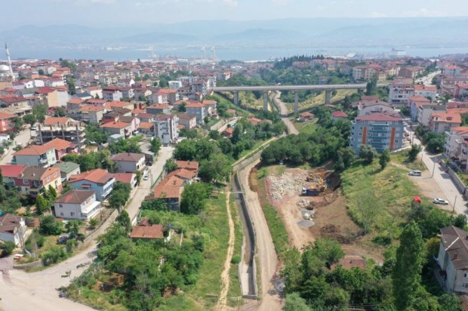Kocaeli Büyükşehir Belediyesi, Derince'ye 40 bin metrekare nitelikli aktif yeşil alan kazandıracağı Cımbızdere Mesire alanında çalışmalara devam ediyor.