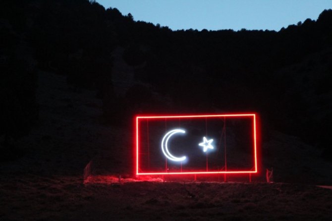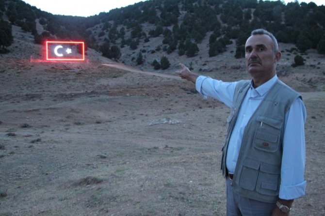 Mahalle sakinlerinden Mehmet Yüksel'de, "40 yıl önce Besni Dursun Hocamız burada öğrencilerine Atatürk Ormanı yazdırdı. Ondan sonra bizde bayrak sevgisi oluştu. Bu ışıklı bayrağımızı yaptık. Aşağıdaki mahallelerden seyrediyorlar. Hocamızın hatırasını yaşatıyoruz. 5 kilometre öteden bayrağımız gözüküyor" diye konuştu.