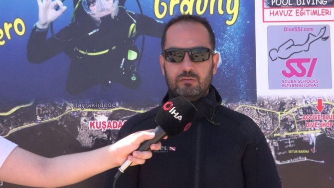 Kentte 25 yılı aşkın süredir profesyonel dalış eğitmenliği yapan Tağmaç Saraçoğlu ise "Pandemi'den dolayı yaklaşık 8 aydır kapalıyız, Kuşadası'nın sualtı güzelliklerini yerli ve yabancı misafirlerimize tanıtmak için elimizden geldiğince en iyi şekilde hizmet vermeye devam ediyoruz. Pamucak resifi bu bölgenin en popüler dalış noktalarından bir tanesi, orada sıcak su çıkan bir noktamız var. Küçük eski amfora parçaları var, Orfoz balıkları görebiliyoruz. Uzun zaman sonra güzel bir heyecanlı dalış oldu. Bir Ahtapotla karşılaştık onu izledik, zaman zaman farklı dalış noktalarına gidiyoruz. Her gün farklı dalış noktalarına gidiyoruz. En popüler dalış noktalarından bir tanesi de Aydın Büyükşehir Belediye Başkanı Özlem Çerçioğlu'nun yaklaşık 6 sene önce sponsor olup destek verdiği dünyanın en büyük uçak batığı Airbus A300 batığına dalışlar planlıyoruz. Günaşırı oraya dalışa gidiyoruz, mağaralara dalışları yapıyoruz, sertifikalı dalıcılarla dalış noktalarımıza gidiyoruz. Sertifikalı dalıcılar buralara dalmak için geliyorlar. Dalış noktalarının derinliği yaklaşık 18 metre civarı yaklaşık 45 dakika dalış zamanı olan dalışlar planlayıp uçağın etrafında içinde dalışlar yapıyoruz. Her misafirimiz memnun kalıyor çünkü uçağın etrafında bir yapay resif oluştu, Sarpa balıkları, Karagöz sürüleri, küçük antenli böcekler bunları görebiliyoruz, uçağın içine giriyoruz, uçağın içine girdiğimiz zaman farklı bir atmosfer var ışıklarının renklerin, görebiliyoruz" diye konuştu.