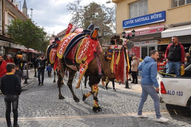 Güreşlere katılacak develer, davul - zurna eşliğinde geleneksel kortej yürüyüşü ile Milas sokaklarında tanıtıldı. Ege bölgesi kültürünün temel yapı taşlarından olan develeri gören Milaslılar, korteje yoğun ilgi gösterdi. Bazı vatandaşlar develerle hatıra fotoğrafı çektirdi.