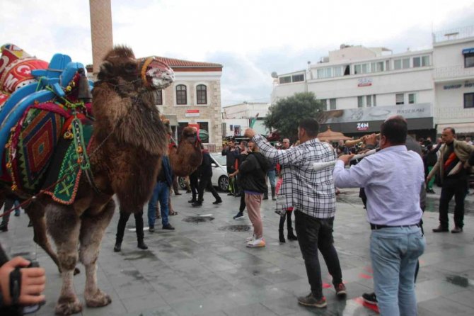 Muğla'nın Bodrum ilçesinde gerçekleştirilecek "Deve Güreşi Festivali" öncesinde develer davul zurna eşliğinde Bodrum sokaklarında dolaştı.