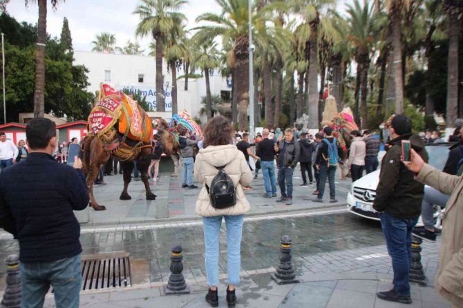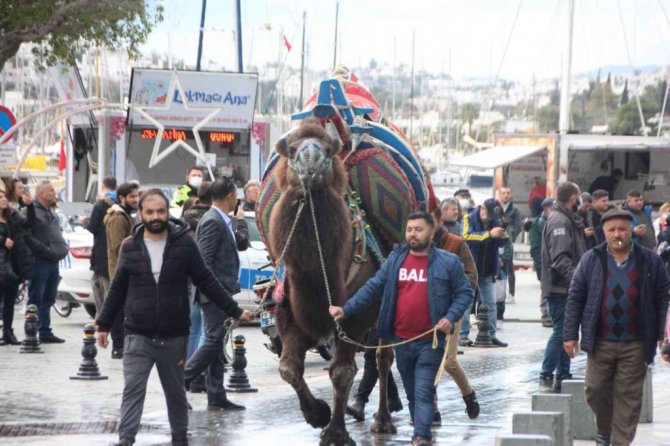 Eski Otogar'dan 5 deve ile başlayan kortej, davul zurna eşliğinde Cevat Şakir Caddesi'nden Bodrum Belediye Meydanı'na ulaştı.