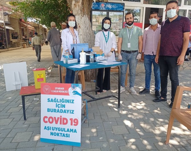Dicle ilçesindeki merkez çarşıda ve halk pazarı önünde yerinde randevusuz aşı uygulaması
