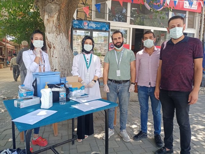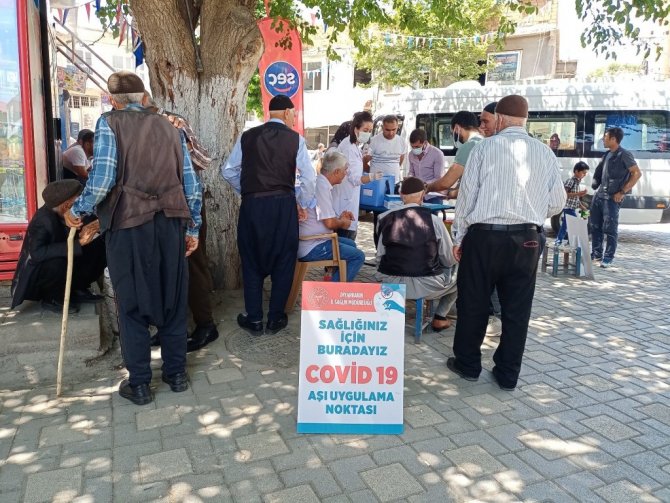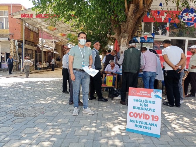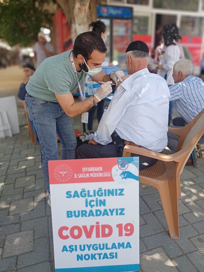 Diyarbakır'ın Dicle ilçesinde İlçe Sağlık Müdürlüğü mobil aşı ekiplerince randevusuz yerinde aşı uygulaması yapılıyor.