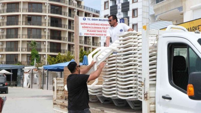 Turizm sezonu öncesinde bir kez daha harekete geçen Didim Belediyesi ekipleri, sahillere usulsüz şekilde şemsiye ve şezlong seren kişiler ile işletmelere müdahale ederek malzemelerini muhafaza altına aldı.
