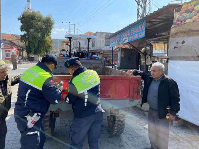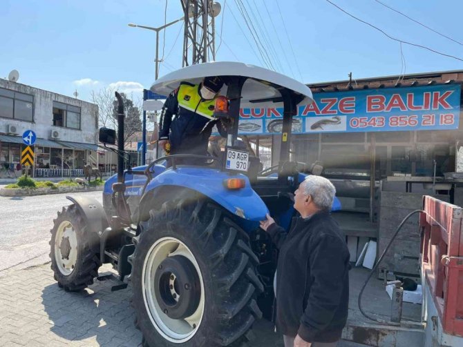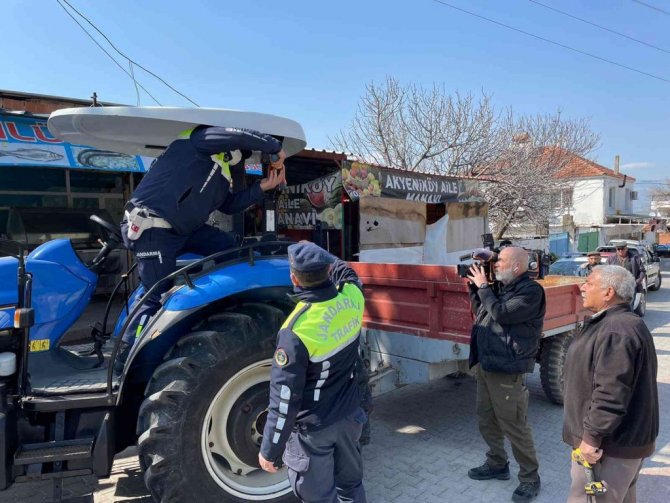 Aydın'ın Didim ilçesinde traktör sürücülerine rops demiri ve reflektör konulu seminer düzenlendi.