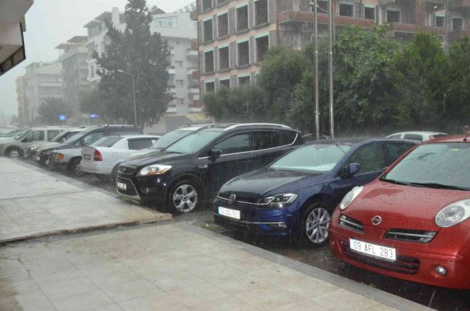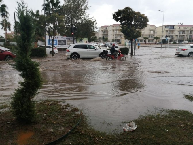 Ege Bölgesi'nde etkili olan şiddetli yağış, Didim'de de etkisini gösterdi.