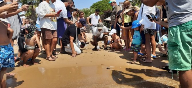 Didim’i tercih eden caretta carettaların yavruları denizle buluştu