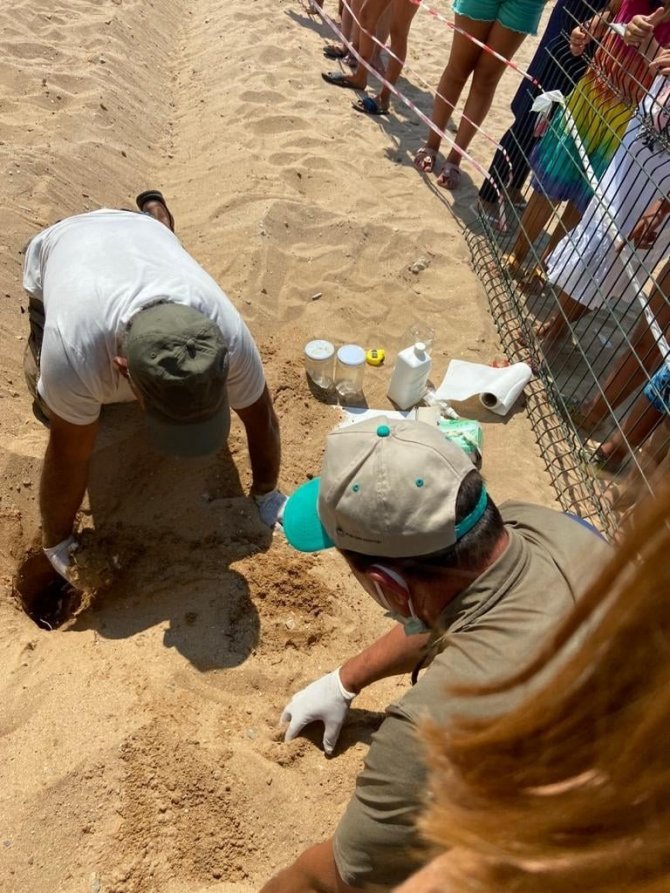 Yapılan kontrol açılışında, carettanın yuvaya 77 yumurta bıraktığı, yumurtalardan 56 adedinin gece, 7 adedinin de kontrol açılışı sırasında çıktığı ve 63 adet yavrunun denizle buluştuğu belirlendi. Yuvanın ve diğer yumurtaların gerekli incelemeleri yapılarak kayıt altına alındığı belirtildi.