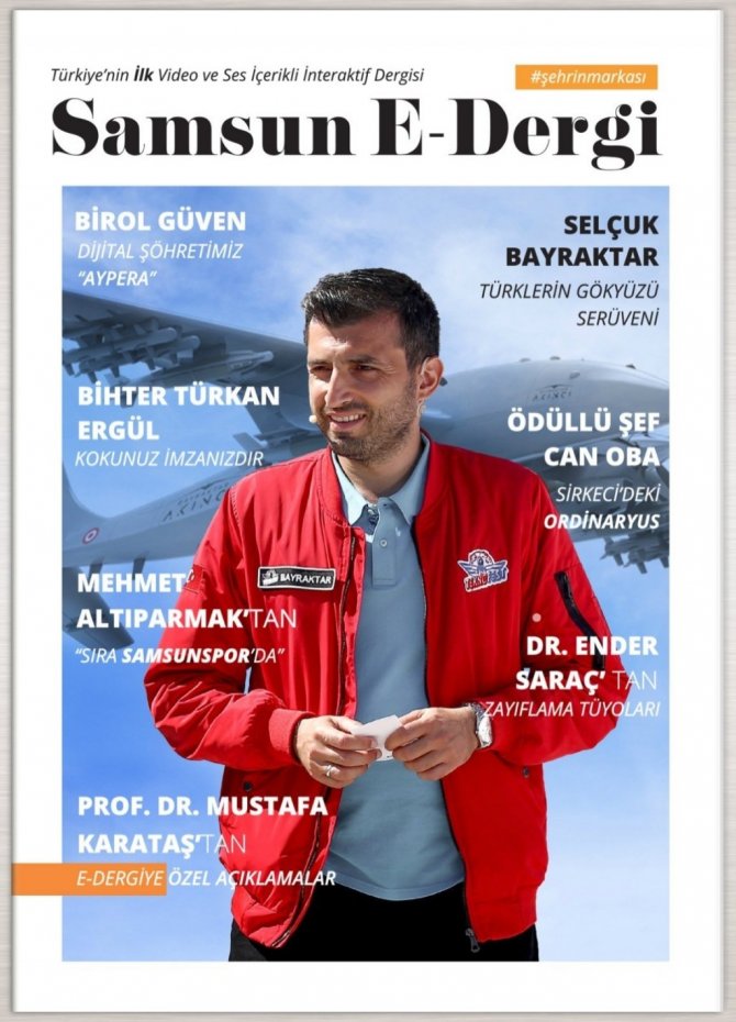 Kent tanıtımlarında bilgi ve iletişim teknolojilerine büyük önem veren Samsun Büyükşehir Belediyesi, Türkiye'nin video ve ses içerikli ilk interaktif dergisinin 2'nci sayısını yayımladı. SamsunE-Dergi'de; Selçuk Bayraktar, Dr.Ender Saraç, Birol Güven, Mehmet Altıparmak, Prof.Dr. Mustafa Karataş gibi ünlü isimlerle yapılan özel röportajlar yer alıyor. Derginin içerisinde yine bir ilke daha imza atılarak sanal gerçeklik çalışması da yerleştirildi. Samsun Büyükşehir Belediye Başkanı Mustafa Demir, yazılım ve içerikleri basın birimi tarafından hazırlanan derginin sadece ülkenin dört bir yanından değil; farklı ülkelerden de Samsunlular tarafından takip edildiğini söyledi.