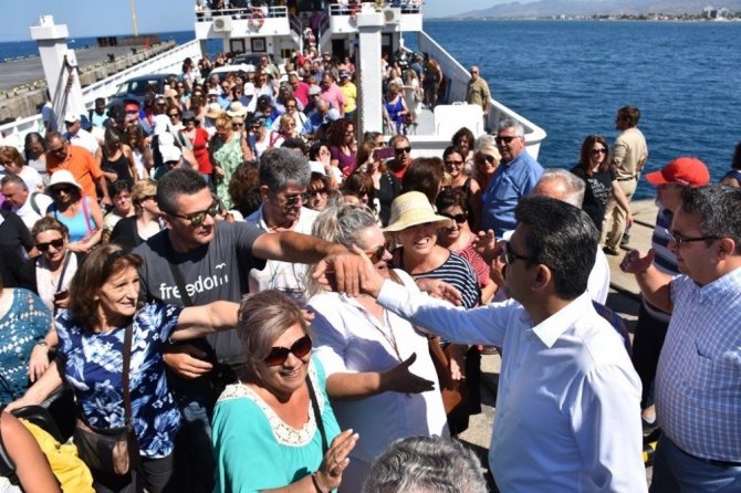 İlk sefer olarak Midilli’den gelen 410 kişilik turist kafilesini limanda karşılayan Başkan Adil Kırgöz, ziyaretçilere "Hoş geldiniz" diyerek hepsine yakın ilgi gösterdi. İki yaka arasında ki dostluğu pekiştirmek adına seferlere çok önem verdiğini söyleyen Dikili Belediye Başkan Kırgöz,”Kent turizmi ve ekonomisini canlandırmak adına komşumuz Midilli ile ilk gemi seferini gerçekleştirdik. Karşı yakadan gelen değerli dostlarımıza ’hoş geldiniz’ dedik. Beklediğimiz ve özlediğimiz güzel dostluk köprüsünü bir kez daha kurduk” dedi.